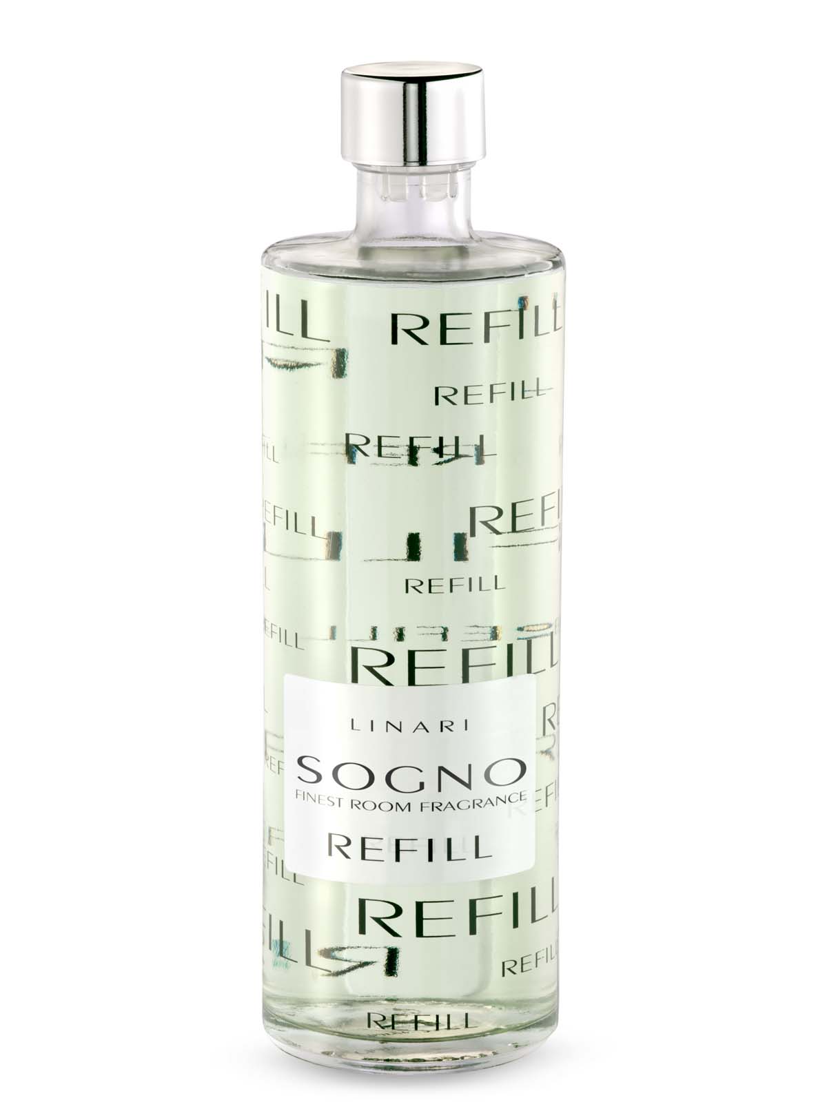 Der 500 ml Diffusoren-REFILL wird in der formschönen Original LINARI-Glasflasche angeboten, wodurch die hohe Parfümqualität von LINARI gewährleistet wird. Der transparente Original-LINARI-Glasflakon ist mit einer Vielzahl von formschönen REFILL-Logos dekoriert und wird mit einem dekorativen, silberfarbenen Schraubdeckel geliefert. Ein neues Original-Kapillarstäbchenset ist im Lieferumfang des Diffusoren-REFILLs enthalten.